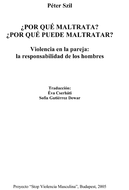 Texto principal del libro con el mismo título, publicado por el Proyecto Stop Violencia Masculina (Budapest, Hungría, 2005). Traducción al castellano por Éva Cserháti y Sofia Gutiérrez Dewar