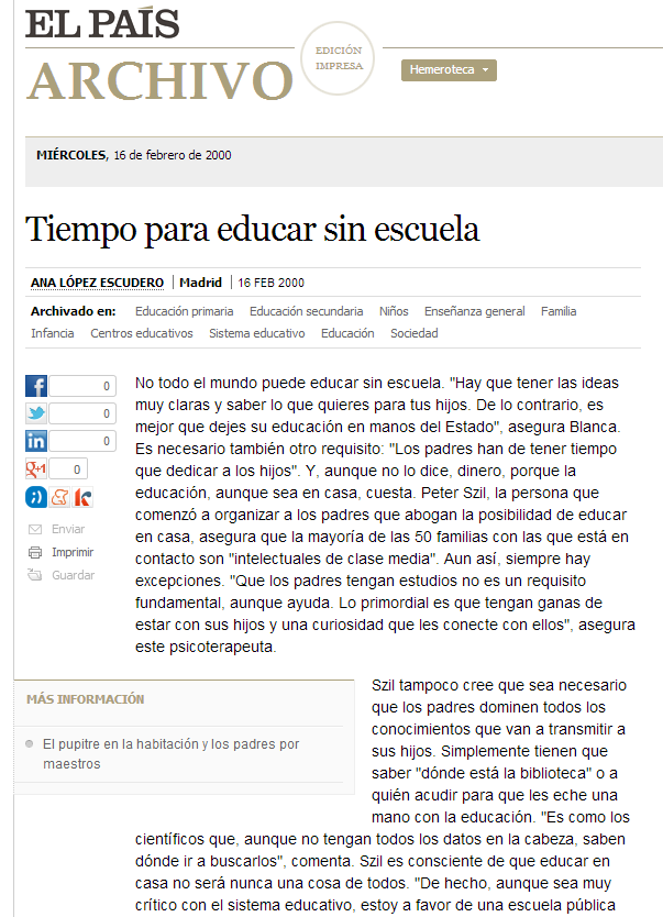 Artículo de EL PAÍS en dos partes, 16 de febrero de 2000:
