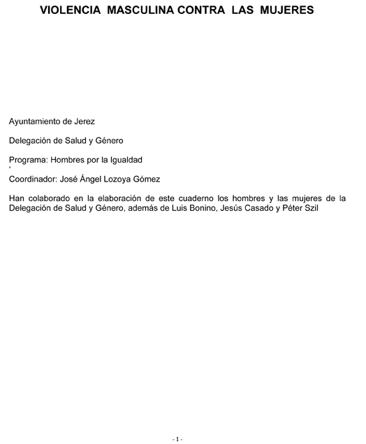 Primer número de la colección Apuntes de Género del Ayuntamiento de Jerez, Delegación de Salud y Género. Programa: Hombres por la Igualdad, 2003. Coordinador: José Ángel Lozoya Gómez. Han colaborado en la elaboración de este cuaderno los hombres y las mujeres de la Delegación de Salud y Género, además de Luis Bonino, Jesús Casado y Péter Szil