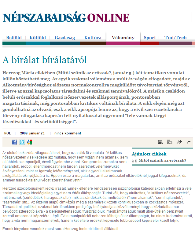 Párkapcsolati erőszakkal foglalkozó civilszervezetek közös válasza Herczog Mária őket bíráló írására.