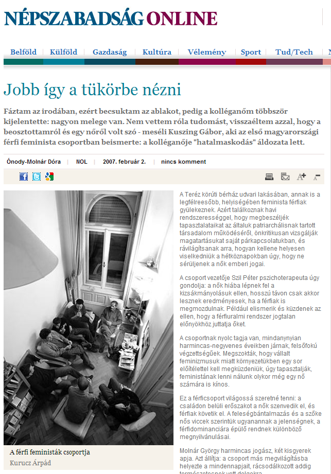 Ónody Molnár Dóra riportja a Népszabadságban a feminista férficsoportról.