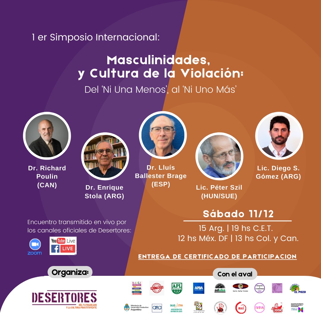 Intervención en el 1er Simposio Internacional: Masculinidades, y Cultura de la Violación – Del ‘Ni Una Menos’, al ‘Ni Uno Más’ organizado por Desertores del patriarcado y la cultura prostituyente (Argentina), el 11 de diciembre de 2021. Las exposiciones de los panelistas invitados se pueden visionar aquí. La intervención de Péter Szil y la sección Preguntas del Público, previa al cierre del simposio, en el video incrustado más abajo aquí.