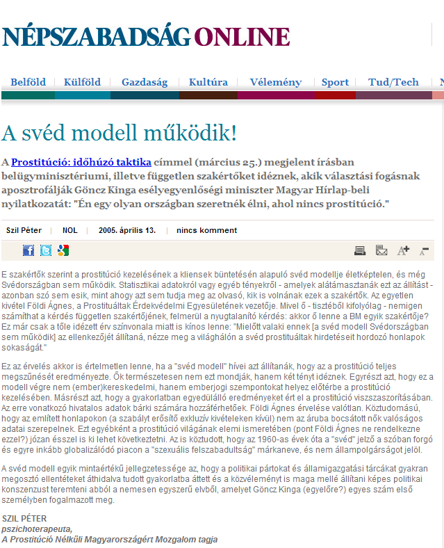A Népszabadságban eredetileg megjelent hír (Prostitúció: időhúzó taktika) megtekinthető itt.